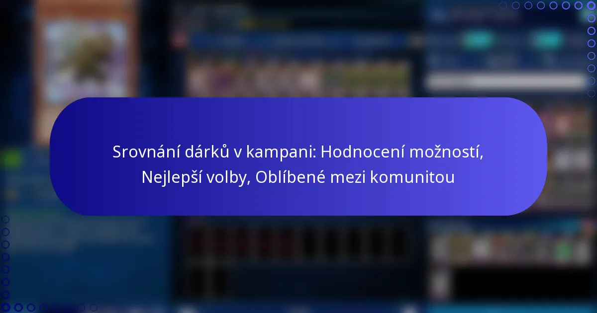 Dary kampaně hrají klíčovou roli v zapojení podporovatelů a propagaci určitého cíle, přičemž jejich úspěch je do značné míry závislý na jejich relevanci a emocionálním spojení s poselstvím kampaně. Pro výběr nejlepších dárků je nezbytné vyhodnotit hodnocení uživatelů, popularitu a demografické preference, což zajistí, že vybrané položky budou rezonovat s publikem. Pečlivým porovnáním faktorů, jako jsou cena, kvalita a použitelnost, můžete učinit informovaná rozhodnutí, která se shodují s cíli vaší kampaně a oblíbenými položkami komunity.
